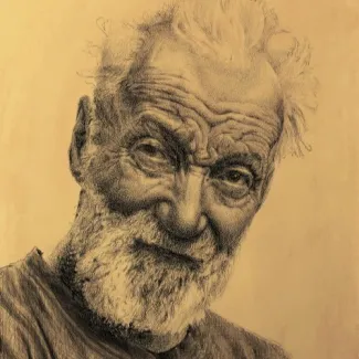 Yksityiskohta Elga Sesemannin teoksesta Omakuva keltaisen ruukun kanssa, 1943. Kuva: HAM/Hanna Kukorelli
