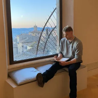 Eveliina Hämäläinen toimii Vapaassa Taidekoulussa ensimmäisen vuosikurssin vastuuopettajana. Agnes Martinista kertovan kirjan avaaminen tarjosi taideuran alkuaikoina inspiraation, samoin Utön saarella keskellä merta vietetyt hetket.