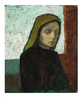 Detalj ur Elga Sesemanns verk Självporträtt med gul kruka, 1943. Foto: HAM/Hanna Kukorelli