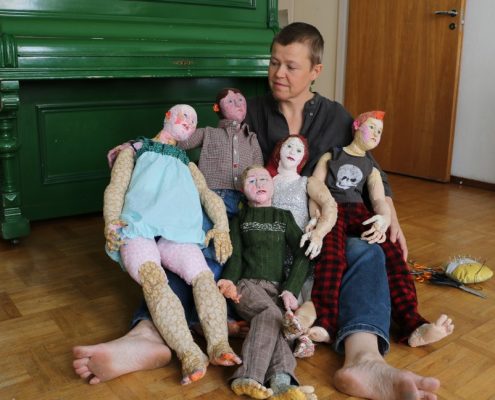 “Tärkeintä oli oppia, että umpikujasta on ulospääsy. Maalaus ajautui lopputyövuoden aikana ja heti sen jälkeen yhä tiukempaan umpikujaan, josta löytyi yllättävä reitti väljemmille vesille: värilliset ommellut veistokset.”