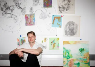 Eveliina Hämäläinen toimii Vapaassa Taidekoulussa ensimmäisen vuosikurssin vastuuopettajana. Agnes Martinista kertovan kirjan avaaminen tarjosi taideuran alkuaikoina inspiraation, samoin Utön saarella keskellä merta vietetyt hetket.