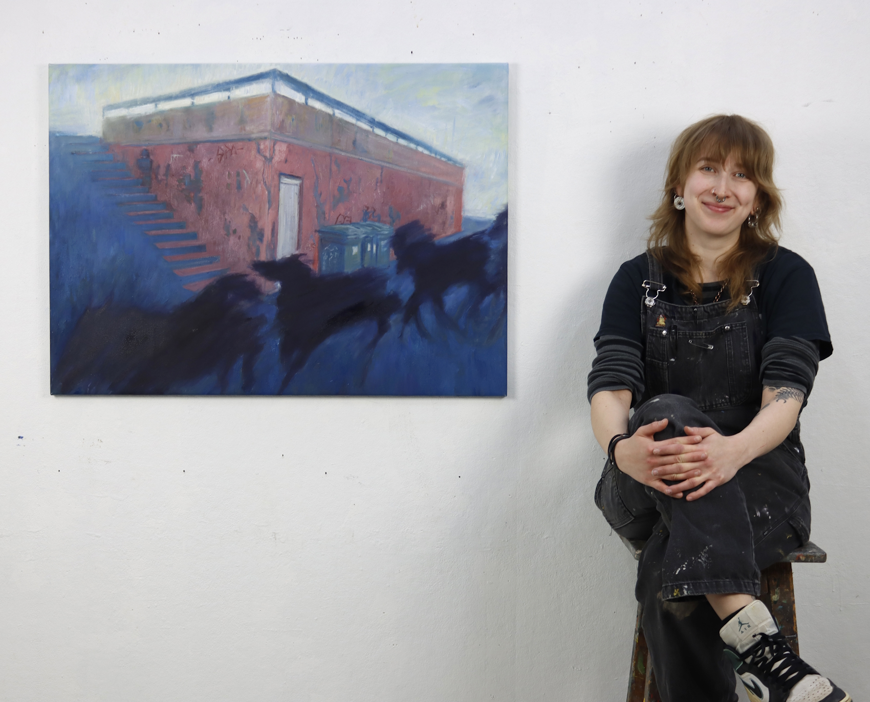 Teoksen lähtökohtana toimi hajanainen ajatus staattisuudesta, liikkeestä ja hetkellisyydestä. Esittävät elementit muodostuivat luontevasti: Olen viime aikoina huomannut ajattelevani hevosia, koen niissä jonkinlaista lohtua. Teoksessa tilan poikki vilahtava hevoslauma siirtyi ajatuksesta kankaalle hyvin intuitiivisesti, nopein liikkein. Hevoset päätyivät edustamaan jonkinlaista sisäistä levottomuuden kokemusta. Samaan aikaan pyörittelin mielessäni kuvaa takapihani näkymästä, roskakatoksesta josta huokuu vuosikymmenten staattisuus ja jossa kuitenkin näkyy vihjeitä ihmisten läsnäolosta ja liikkeistä. Pysähtynyt vaikutelma korostuu erityisesti varhain aamulla, kireän pakkasen luomassa hiljaisuudessa.